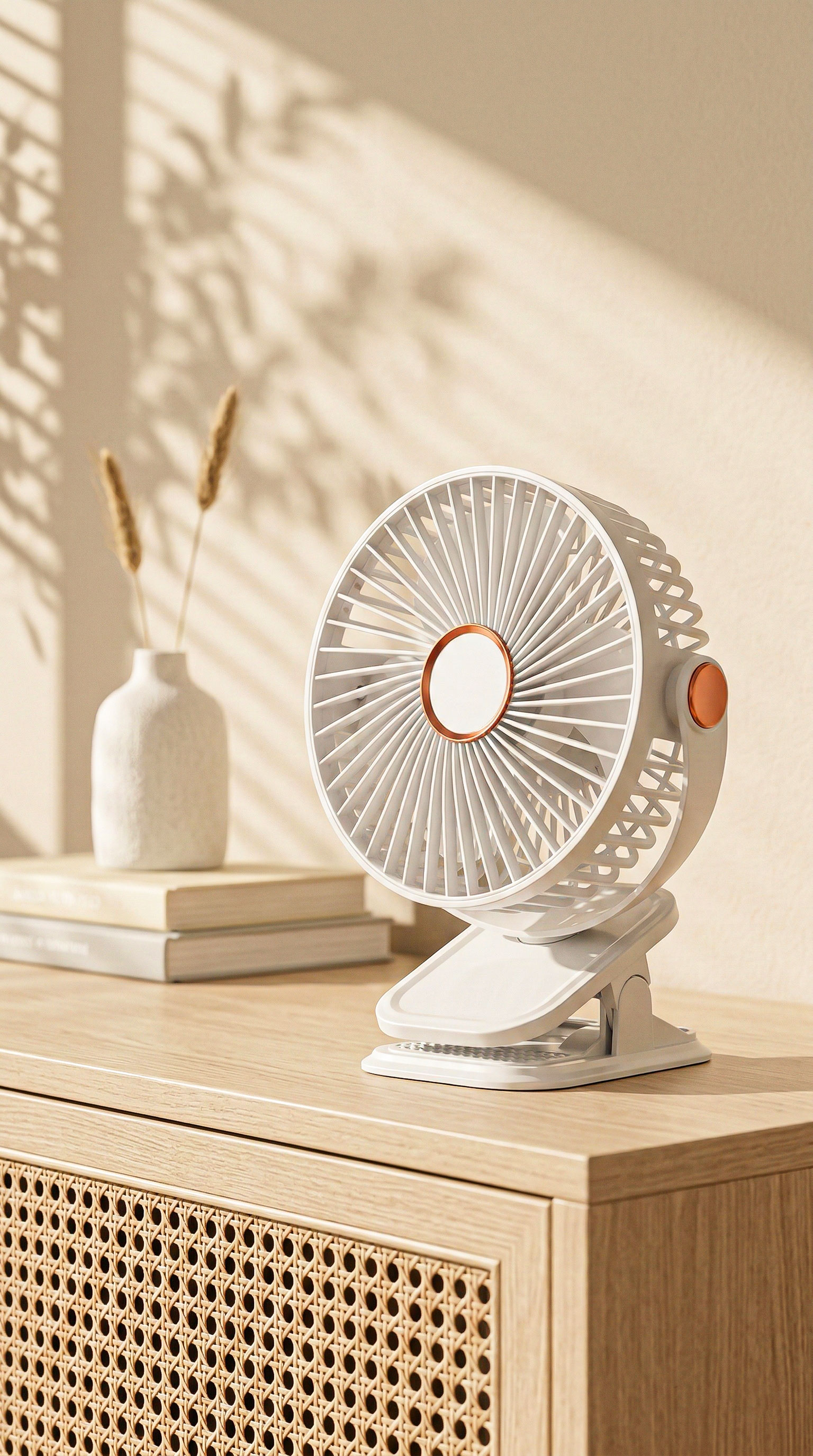 采用温暖的自然斜射光,光线透过窗户投射出斑驳的树影或百叶窗阴影在墙面与桌面;中景构图,略微的斜侧视角,具有浅景深效果,使背景虚化以突出产品主体。