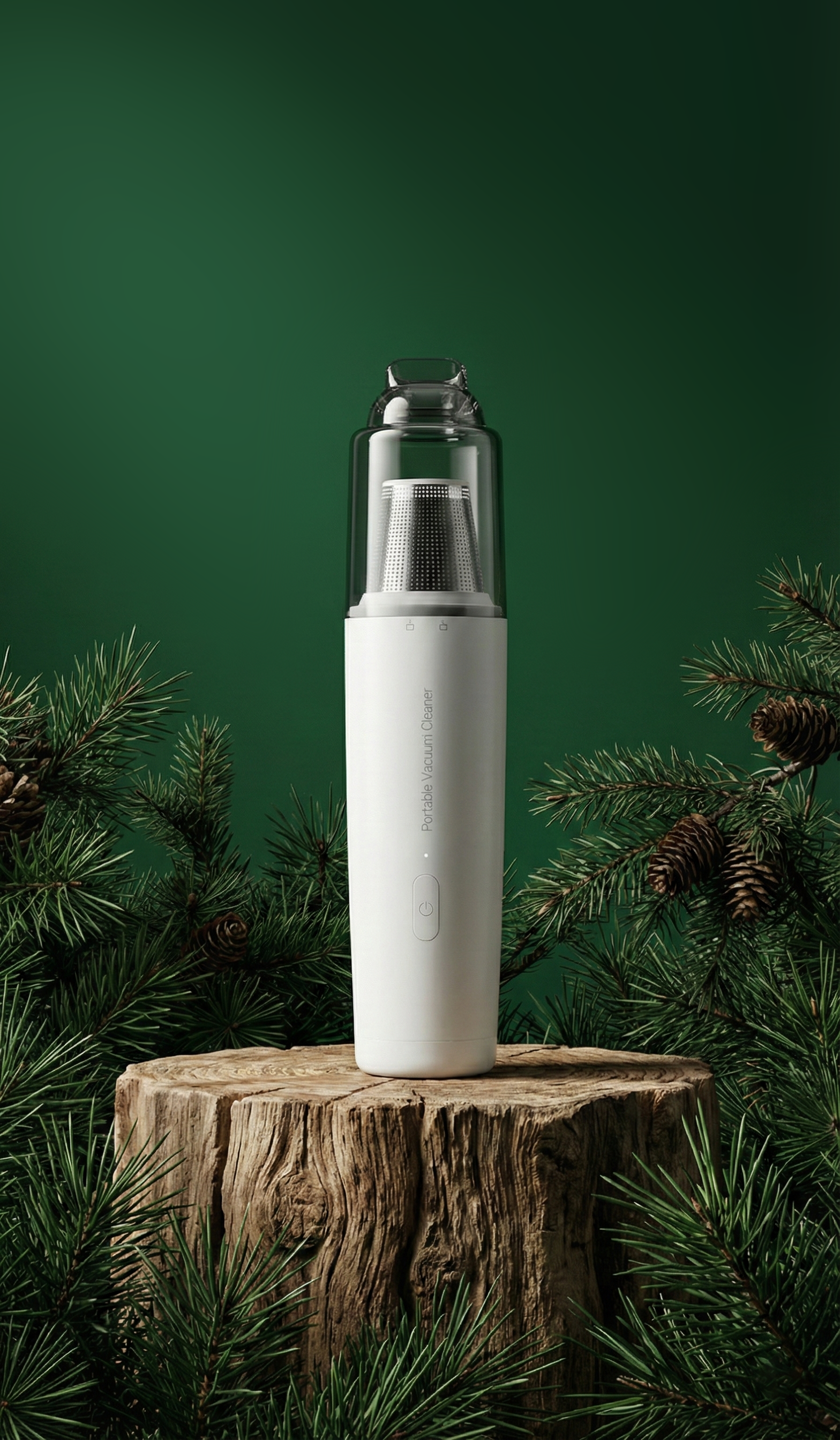 环绕着茂密的深绿色松针和常青树枝叶 2026年2月22日 0 admin 未分类 一张高端吸尘器商业摄影,白色吸尘器放置在天然木桩底座上。周围环绕着茂密的深绿色松针和常青树枝叶,背景是纯净的深绿色墙面。柔和的顶部光照,强调木头纹理与植物细节,极简主义风格,宁静而奢华的森林氛围,超高清画质,8k分辨率。